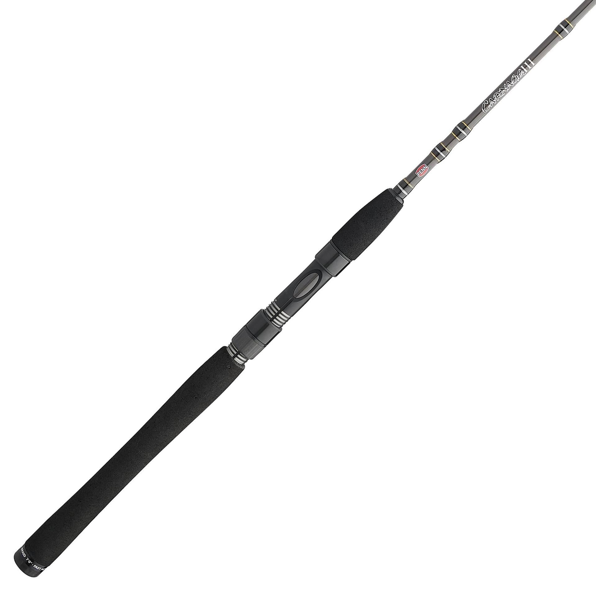 The PENN® Carnage® III rods are truly in a class of their own. These rods represent the next generation of high-performance rod building with powerful. lightweight blanks that are also extremely durable. Our SLC2 blank construction on inshore models houses inner spiral carbon wraps and outer layers of longitudinal carbon fibers to provide an extremely strong. yet balanced rod. Spec’d with high-end components like Fuji® K-Guides. Sea-Guide® and Fuji® reel seats. and Hypalon/Rubber Shrink tube handles. this rod will be anglers’ next go-to workhorse.