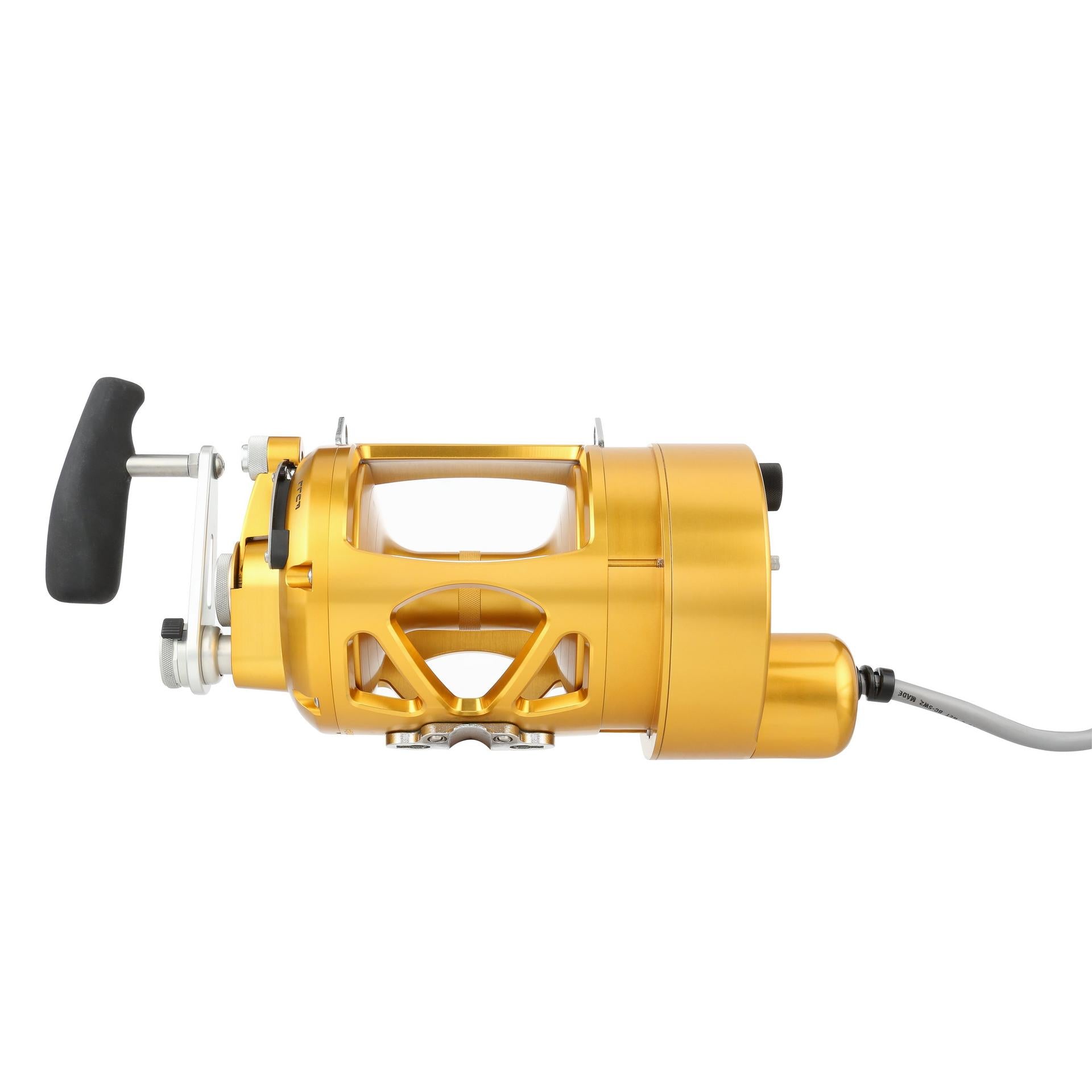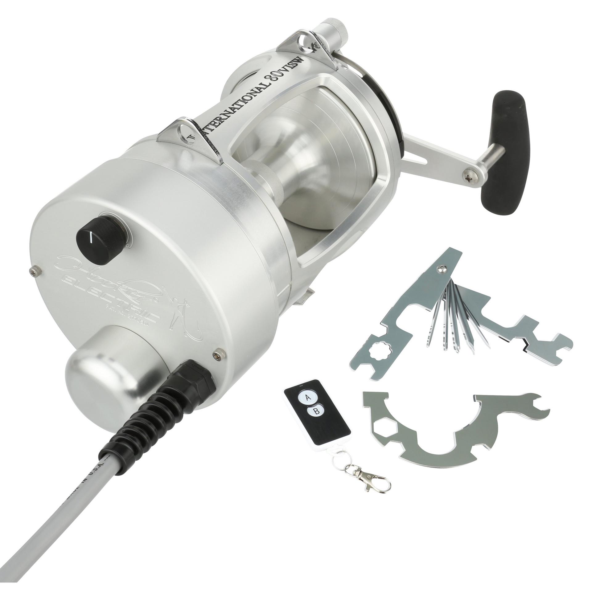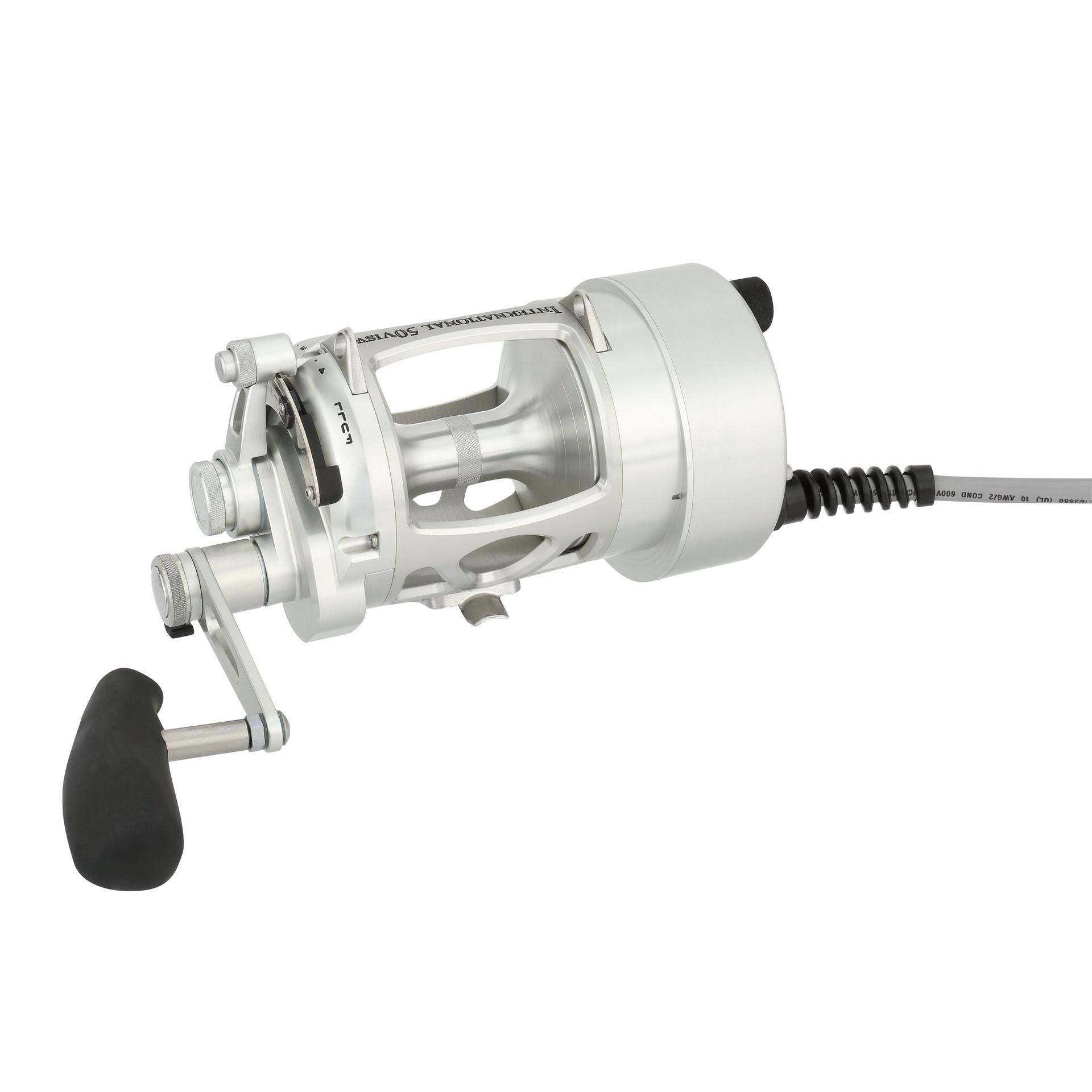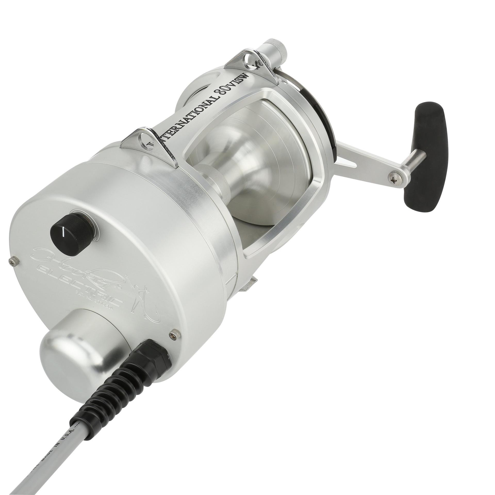 The Hooker Electric PENN ? International Standard reel can retrieve at speeds of 500 feet per min with full variable speed at the turn of the dial. The motor on the standard reels is permanently attached to the left side of the reel. but the reel handle still works for those that want to fight a fish manually. at the push of a button. Built from Aircraft-grade Aluminum construction right here in the USA. these reels are built tough to last a lifetime. .